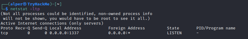 Below is the same command run with root privileges and reveals this information as 2641/nc (netcat)