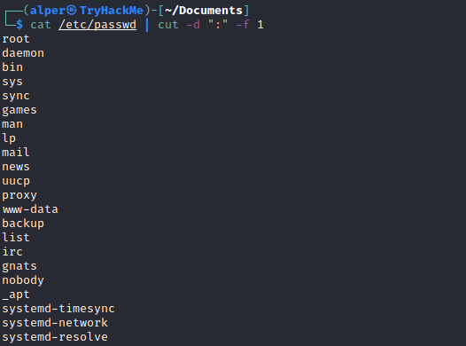 Remember that this will return all users, some of which are system or service users that would not be very useful. Another approach could be to grep for “home” as real users will most likely have their folders under the “home” directory.