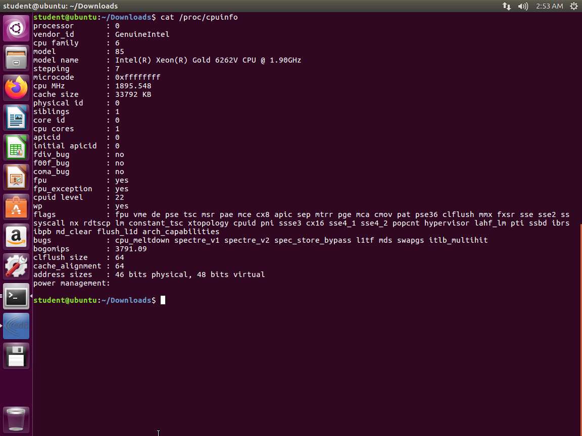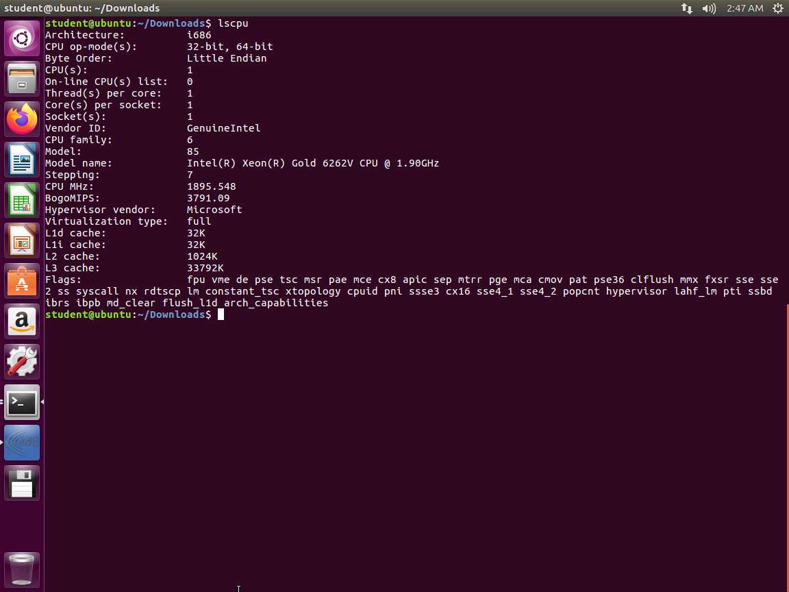Screenshot In the terminal window, enter lscpu. An example of the output of this command is shown in the following screenshot.