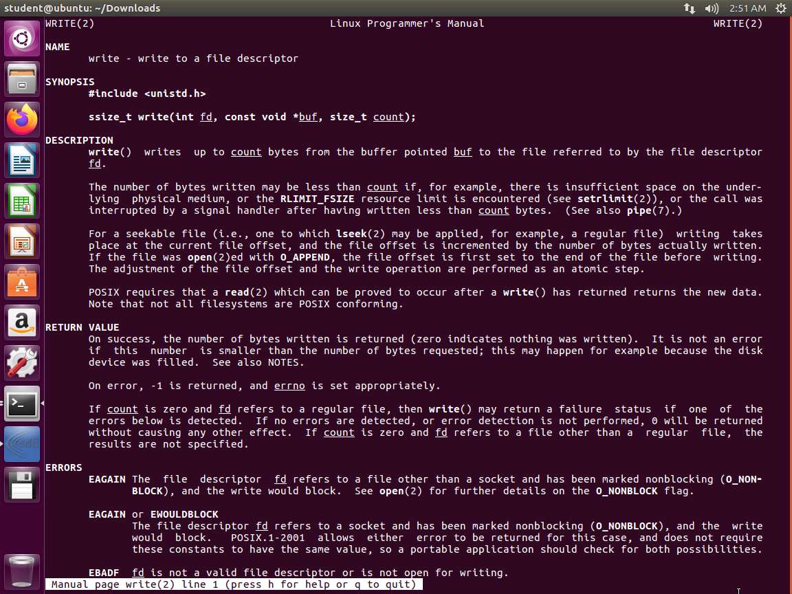 In the terminal window, enter man 2 write. Take a few minutes and review the information in the man page.