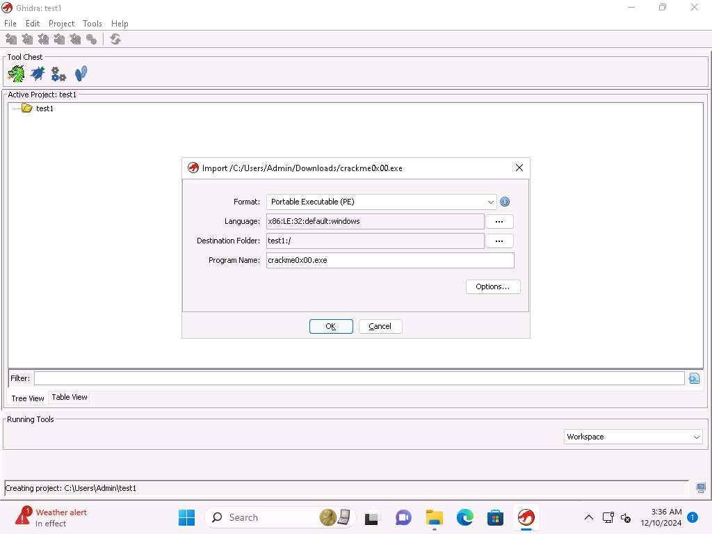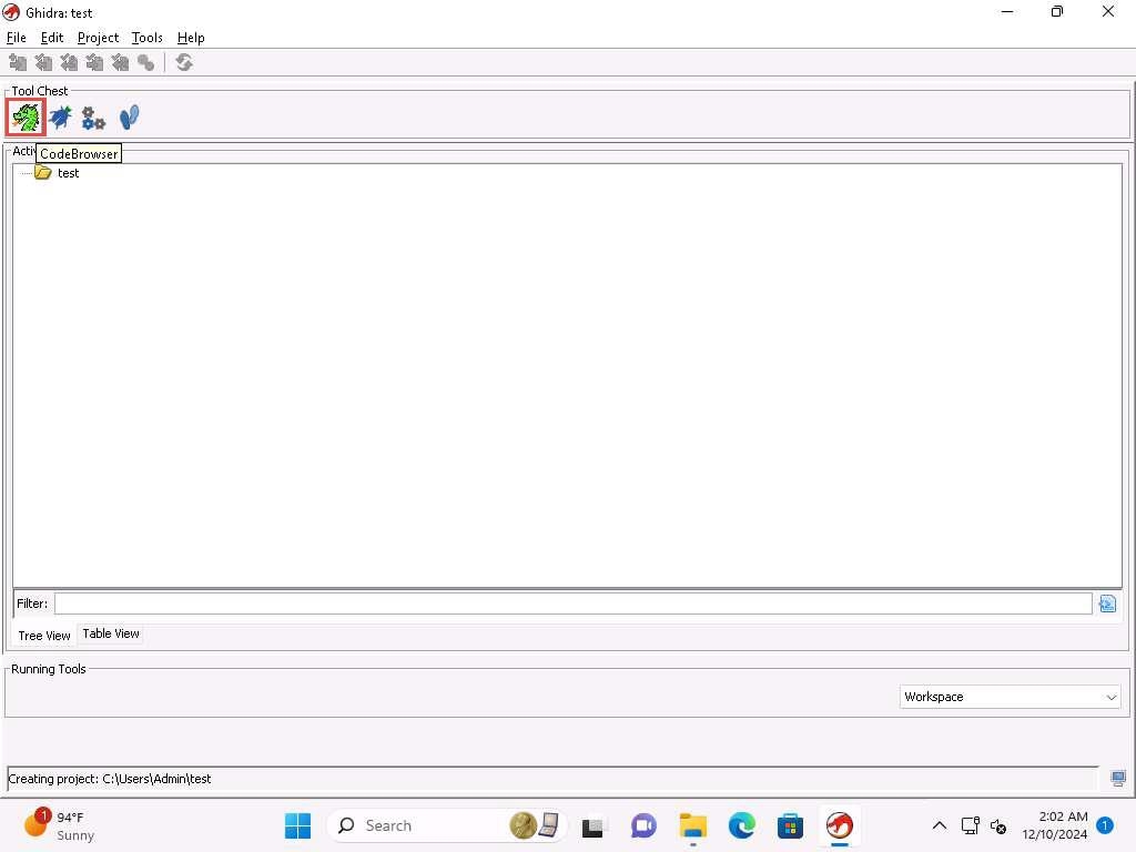 The process is we will run the binary executable file through the Ghidra tool. Open the binary tool in Ghidra