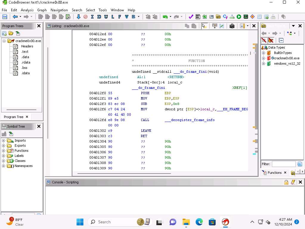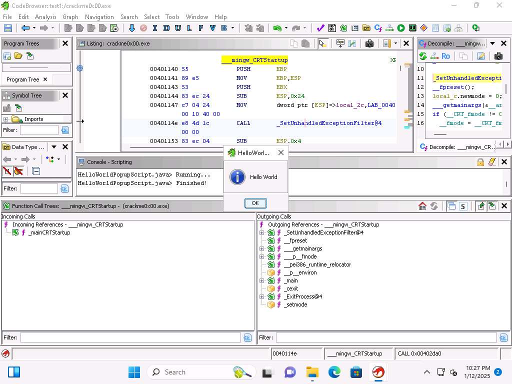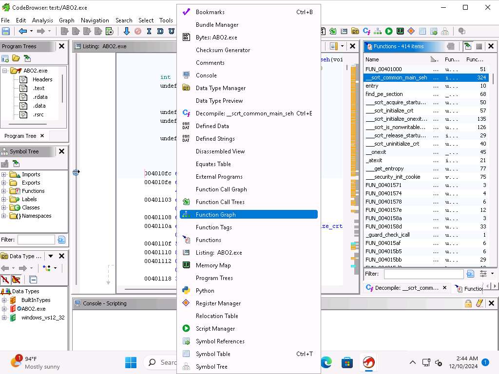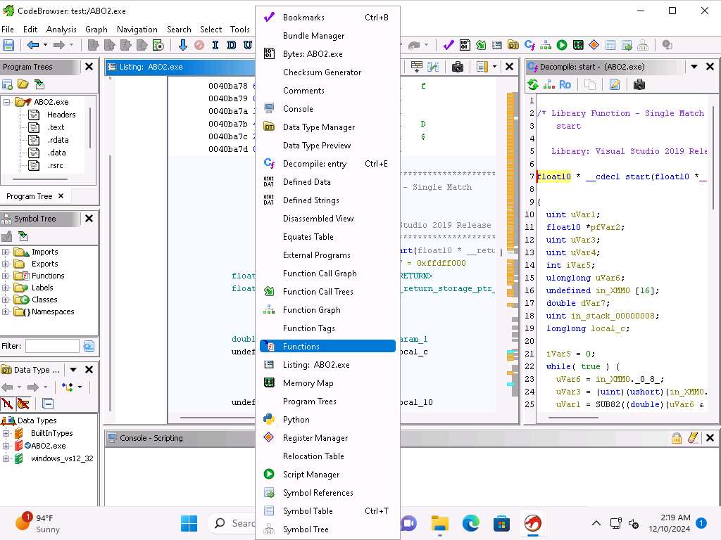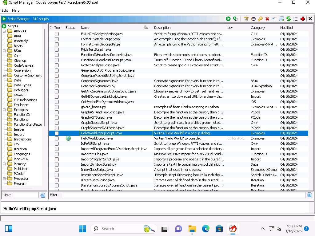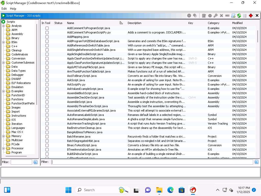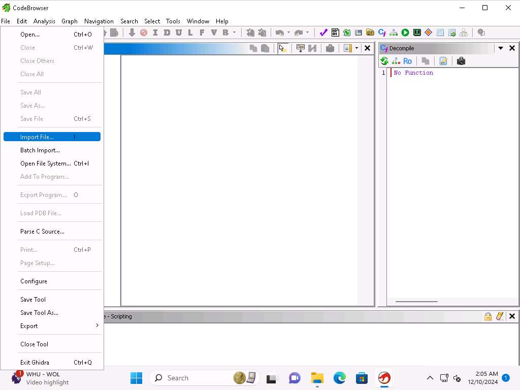 Screenshot Within Ghidra you have a lot of available scripts and integration with Jython. Close the browser window.