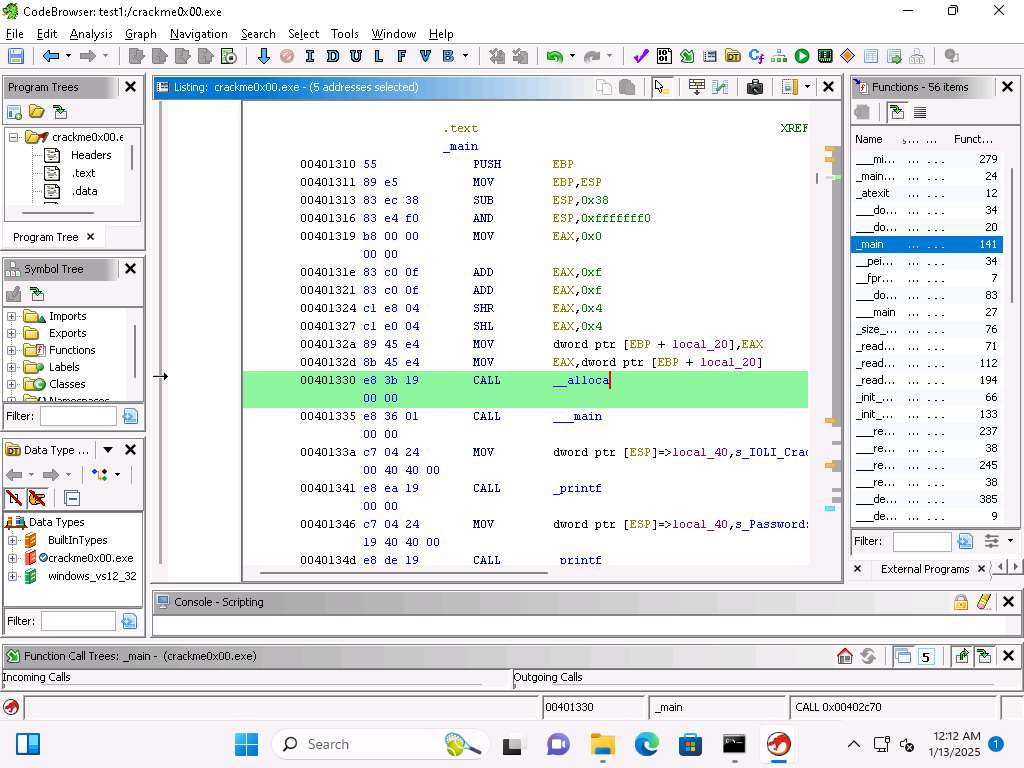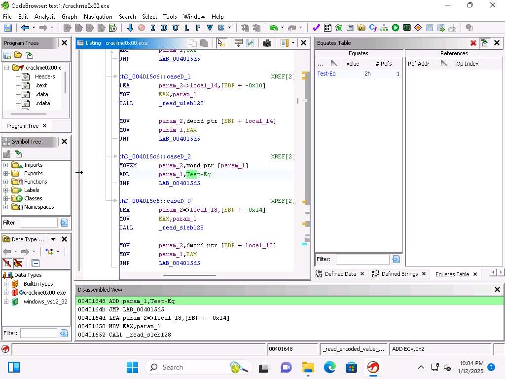 Screenshot We need to find a value that we can use, go to address 00402340.