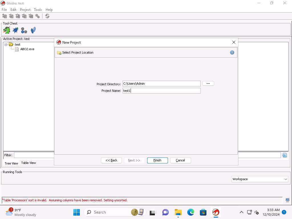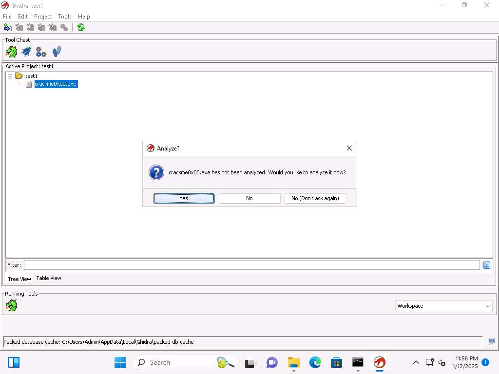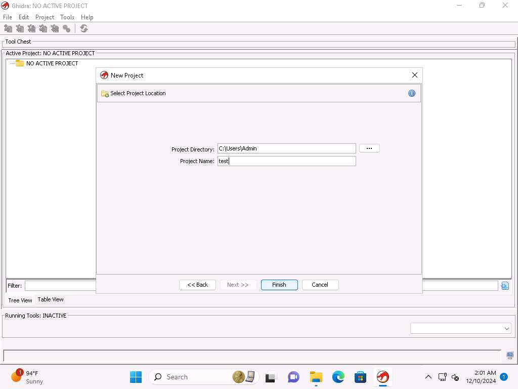 Navigate to C:\Users\Admin\Downloads\Tools\Ghidra and double-click the Ghidarun.bat file to run Ghidra again.