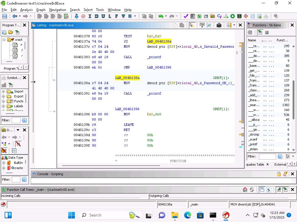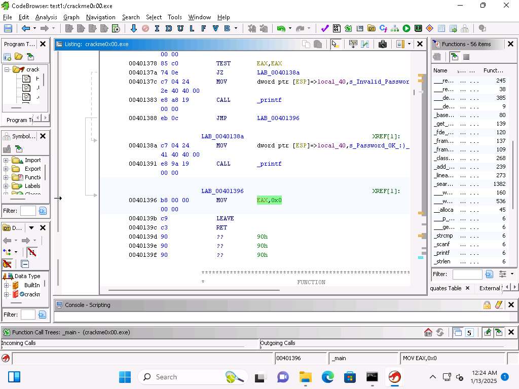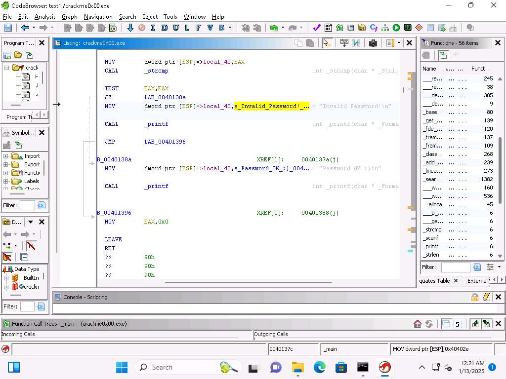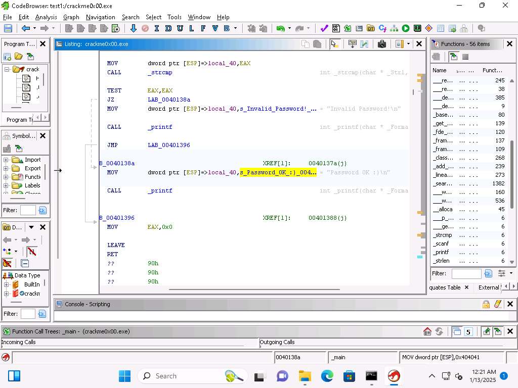 Screenshot Now, let us test our analysis, run the program again and then enter the password of 250382 and see if that results in the program providing the Password OK message.