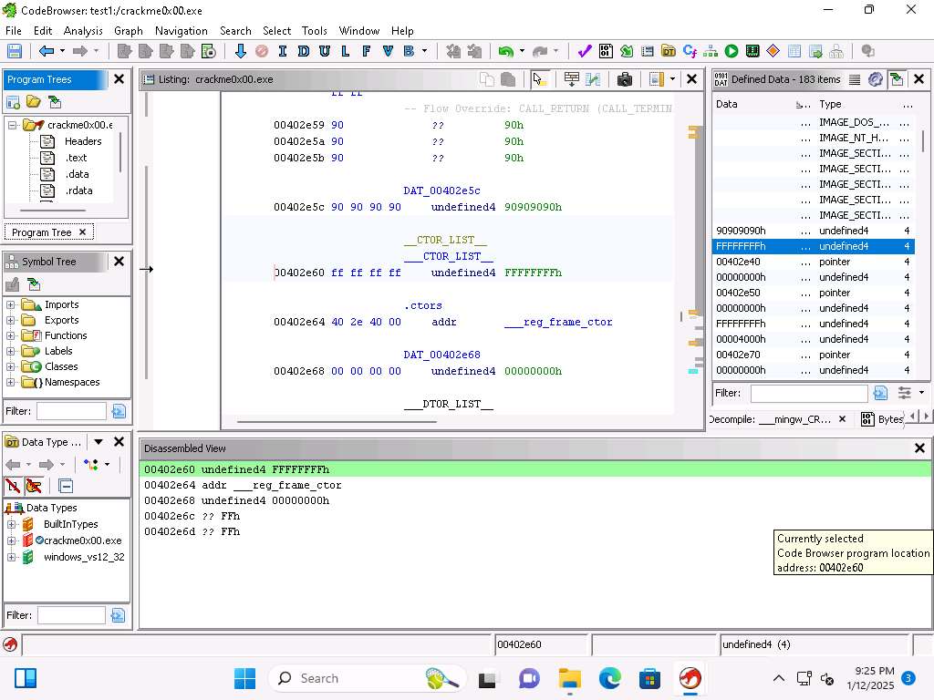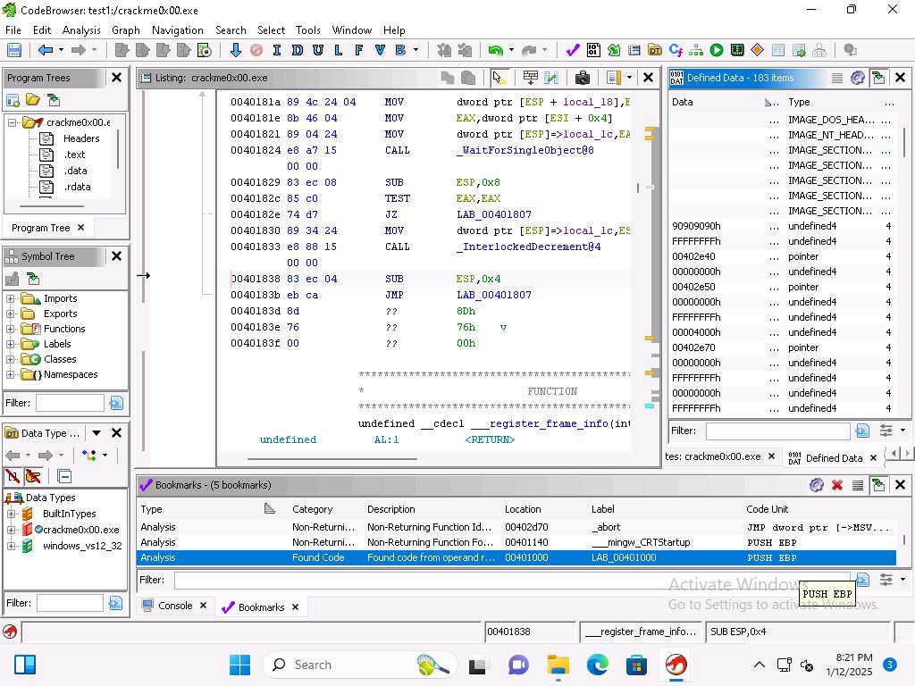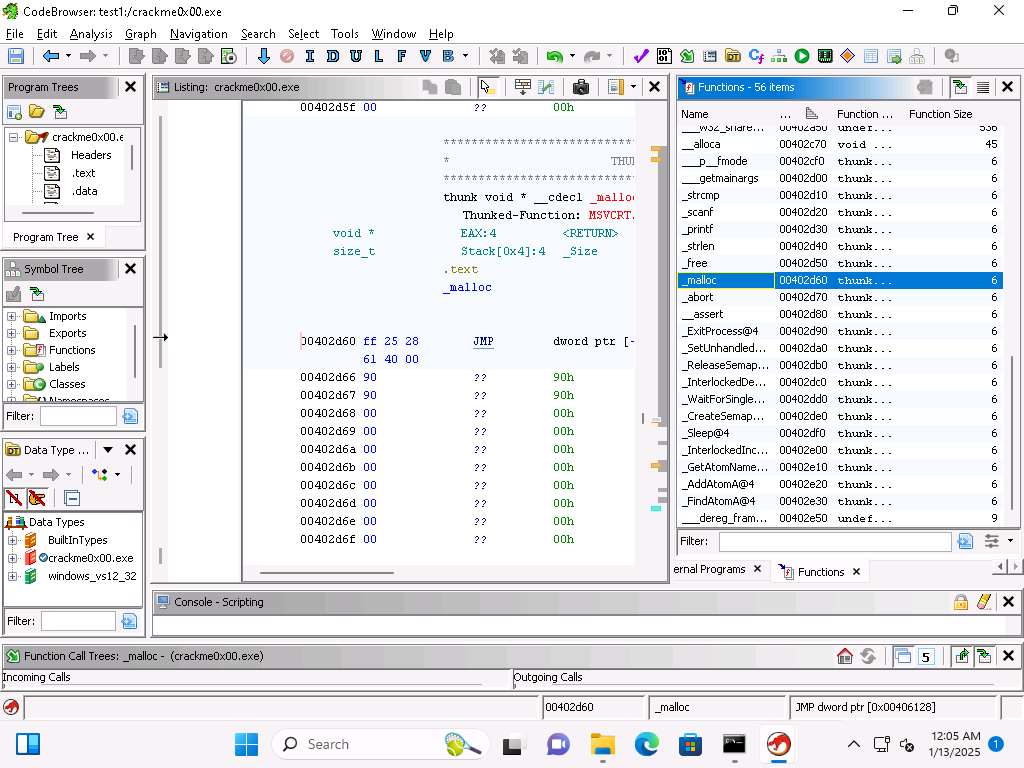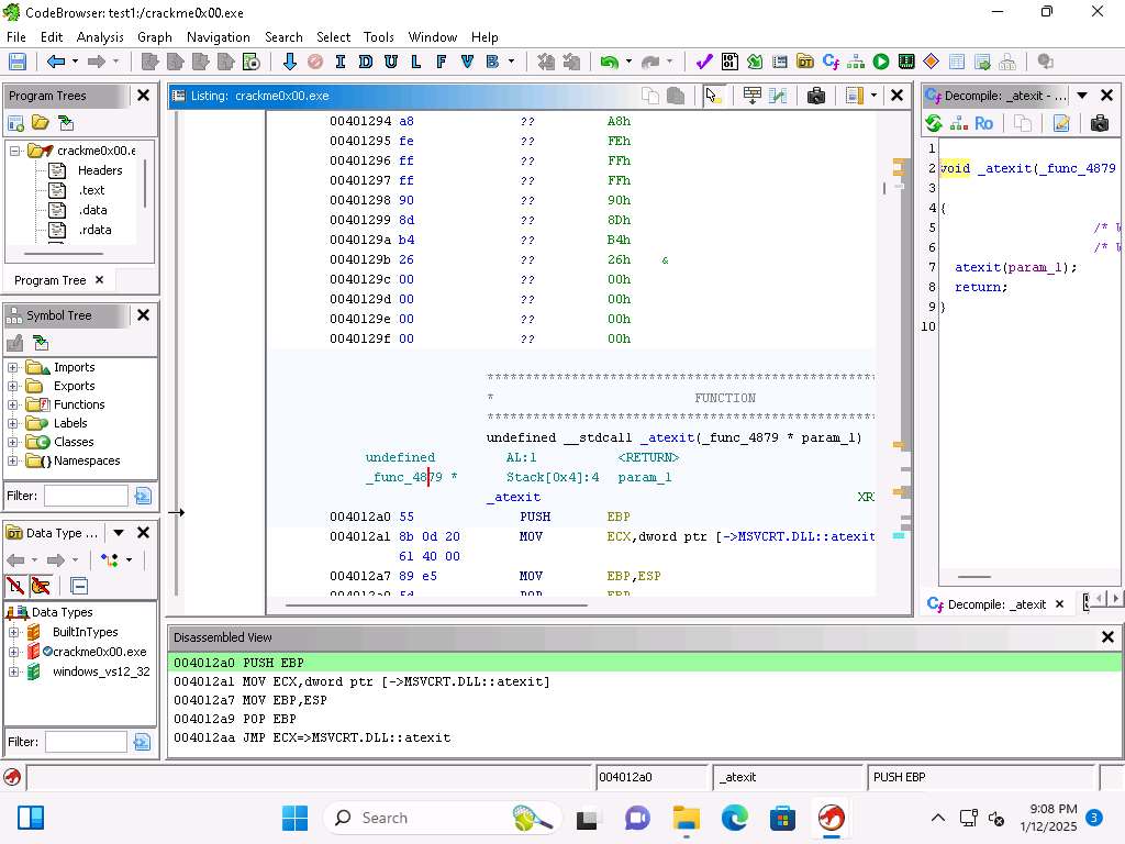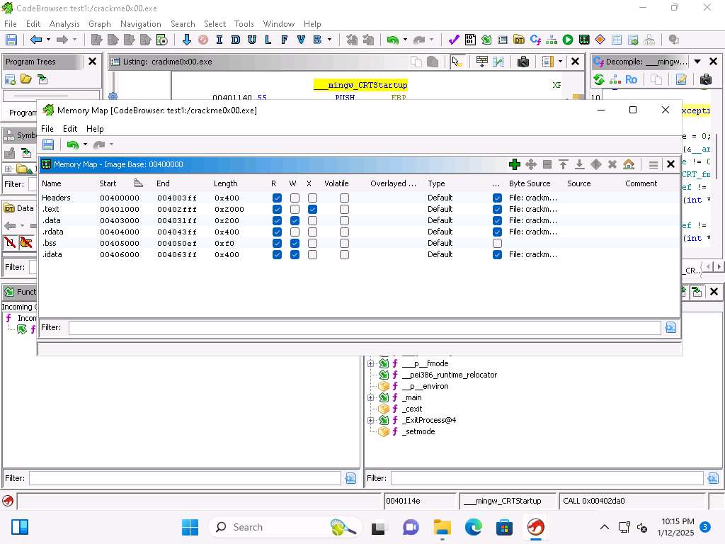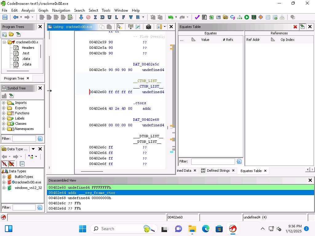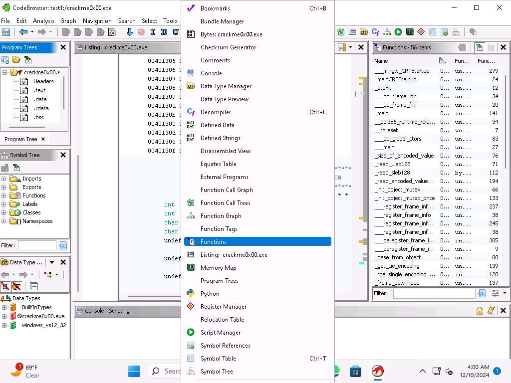 Screenshot This will take some time to complete. Once it does, open the Functions and the Listing windows if they are not displayed