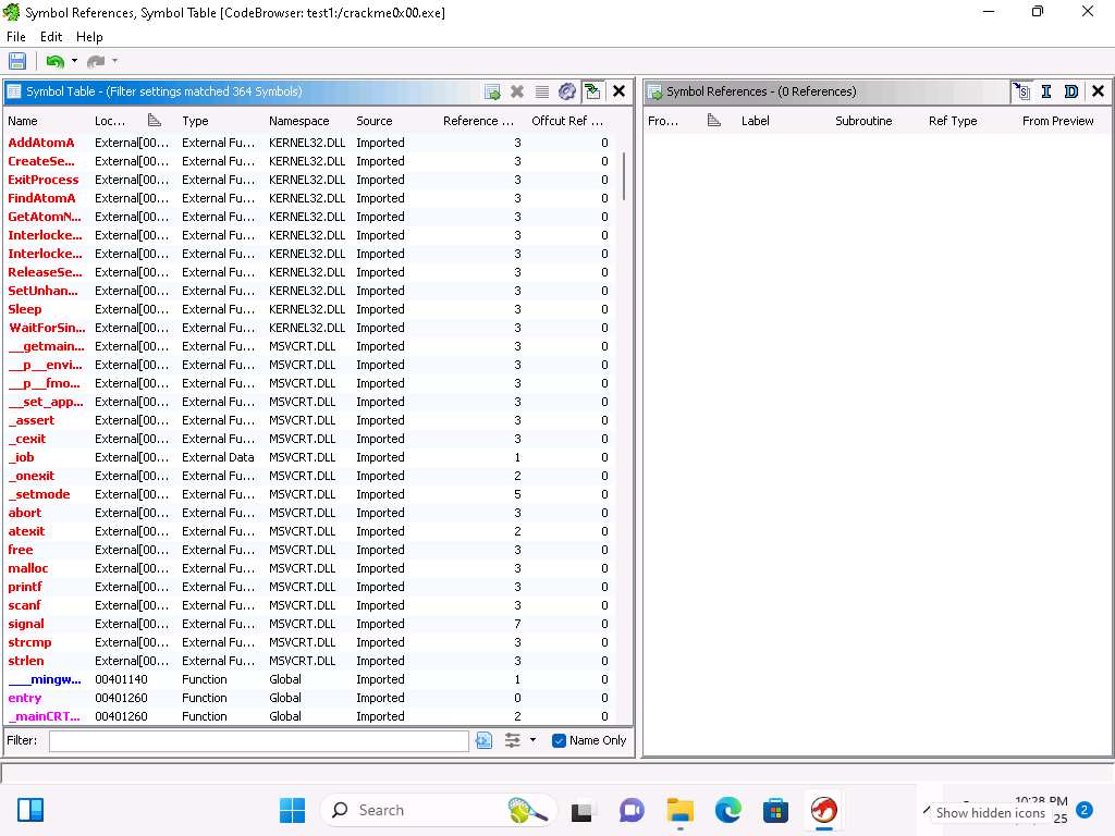 Take a few minutes and review the list of functions, this is where you can see what functions are within the binary and the called functions.