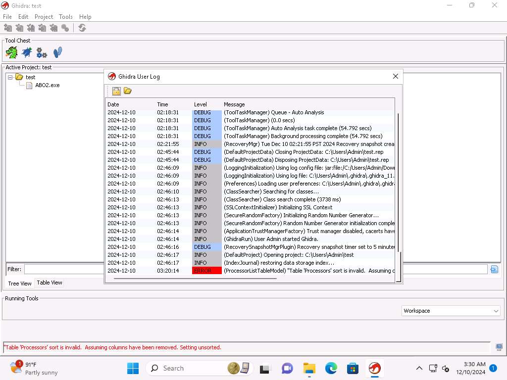 Screenshot Click on Help --> Show Log to view the logs files of Ghidra all consolidated in one place, take a few minutes and review the data that is located here.