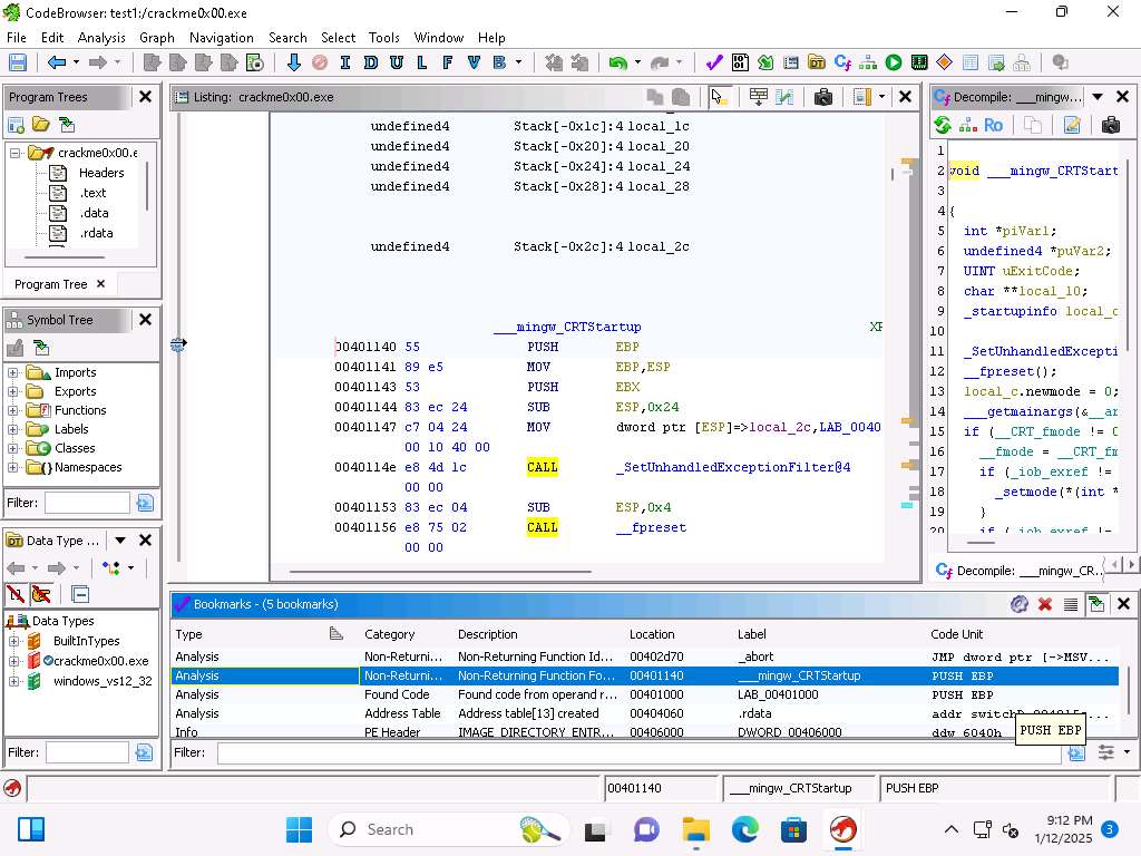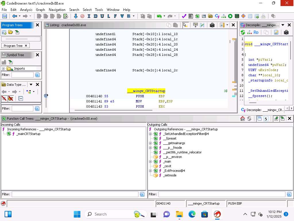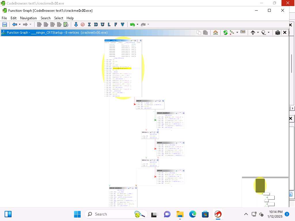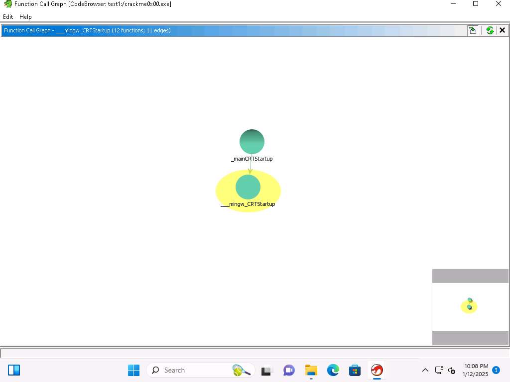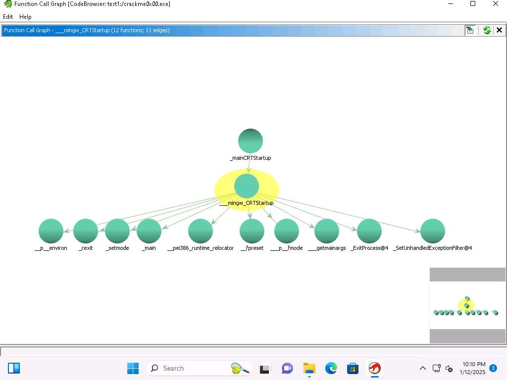 You can see that the CRTStartup function calls mingw, you can click on the + sign there and it will expand it out. Take a few minutes and explore the different functions when you expand them