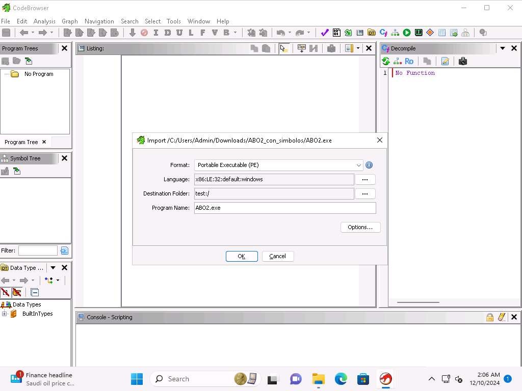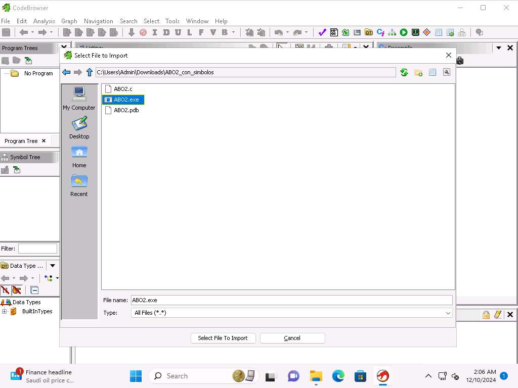 yh229o5n.jpg Now, click on File --> Import File and navigate to C:\Users\Admin\Downloads\ABO2_con_simbolos folder and select ABO2.exe and click Select File to Import button.