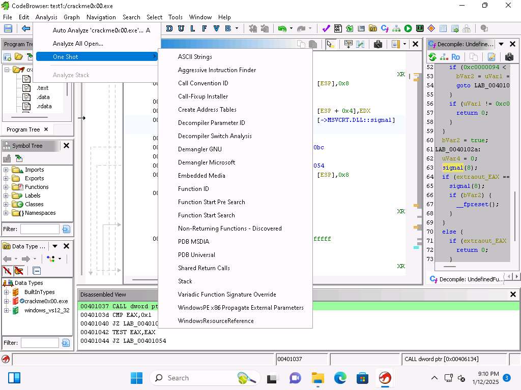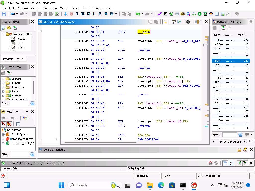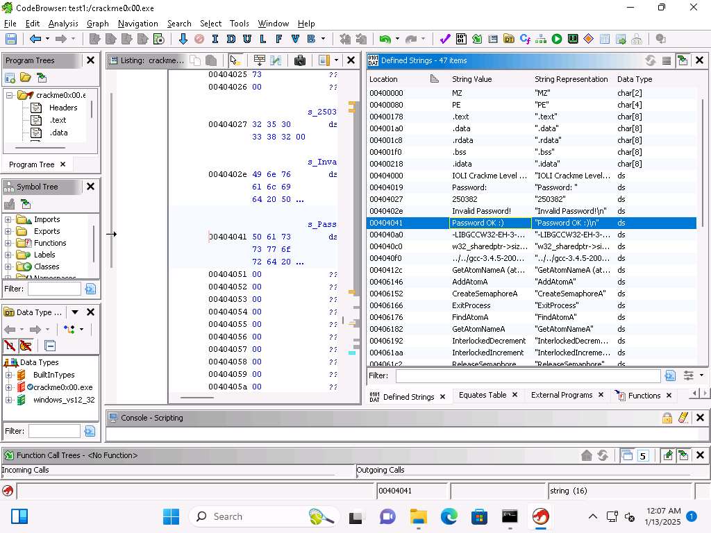 Now, we will analyze the crackme0x00.exe file to find the password.