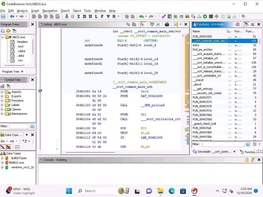 Screenshot Functions pane will be displayed at the right hand pane, double-click _scrt_common_main_seh in the Functions pane.