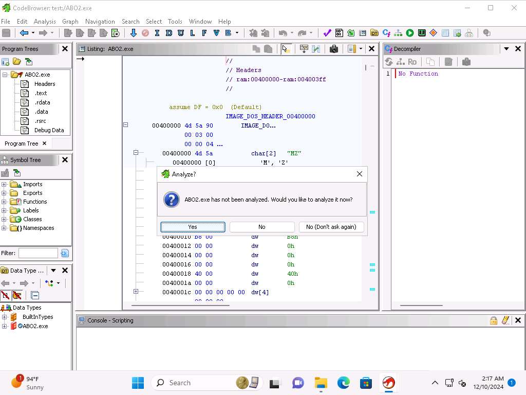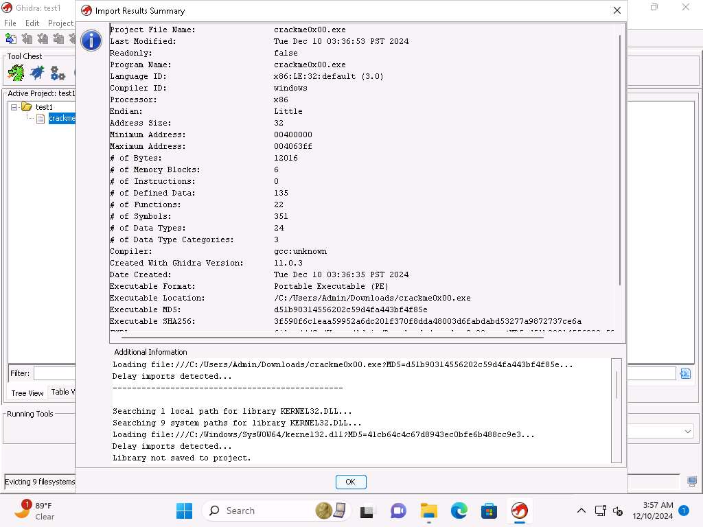 Now, we will work with another file and practice using Ghidra to Reverse Engineer it
