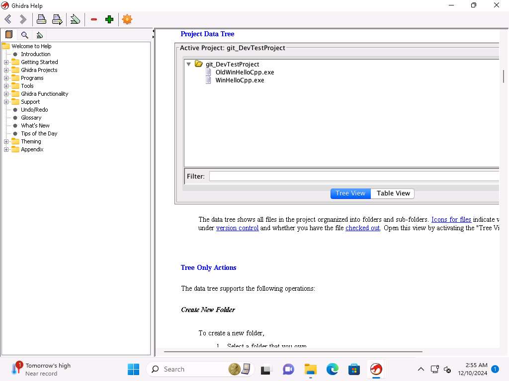 Screenshot In the Ghidra window, press F1 to open Ghidra Project Window, take a few minutes and review the information about Creating a Project and the other items in the help menu.