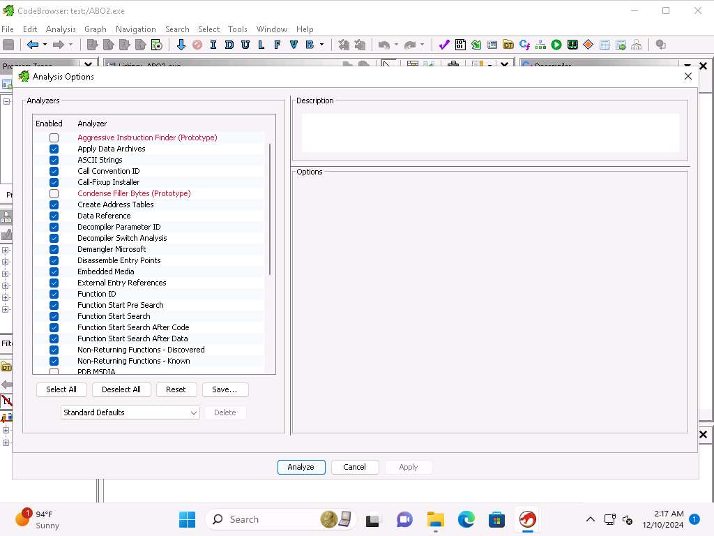 Screenshot In the Analysis Options window, keep all the selections to default and click on Analyze.