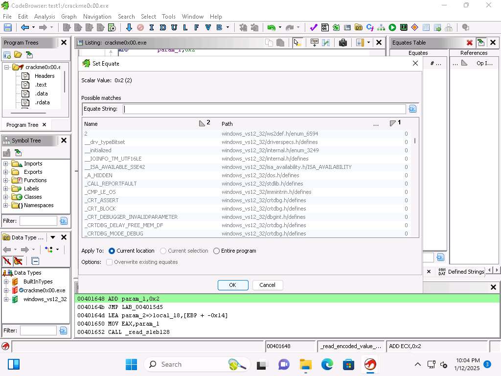 This will replace the 0x2 with the entered string and the value will be listed in the Equates Table.