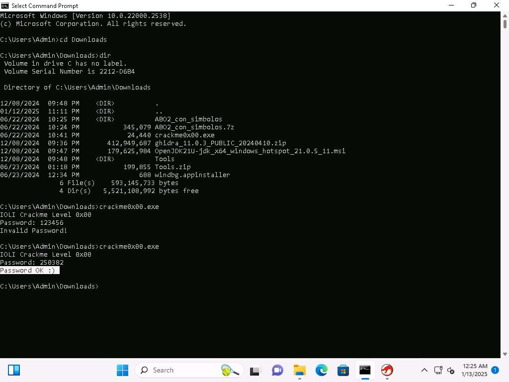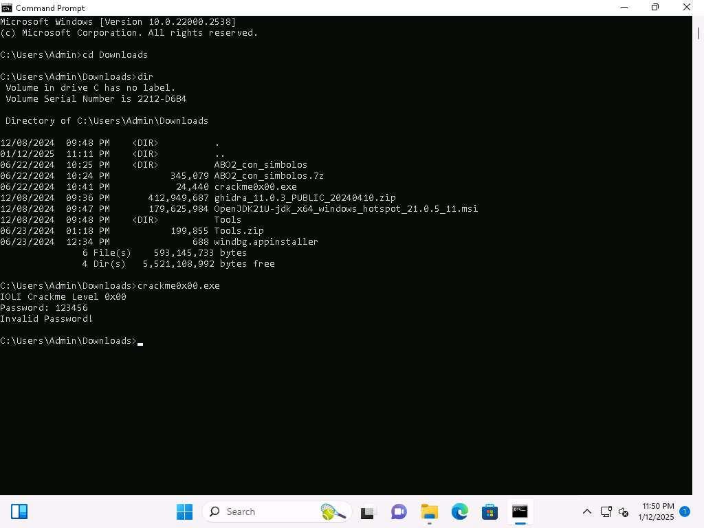 Open a Command Prompt window, and navigate to C:\Users\Admin\Downloads\Tools run crackme0x00.exe command to run the file from a command prompt window.