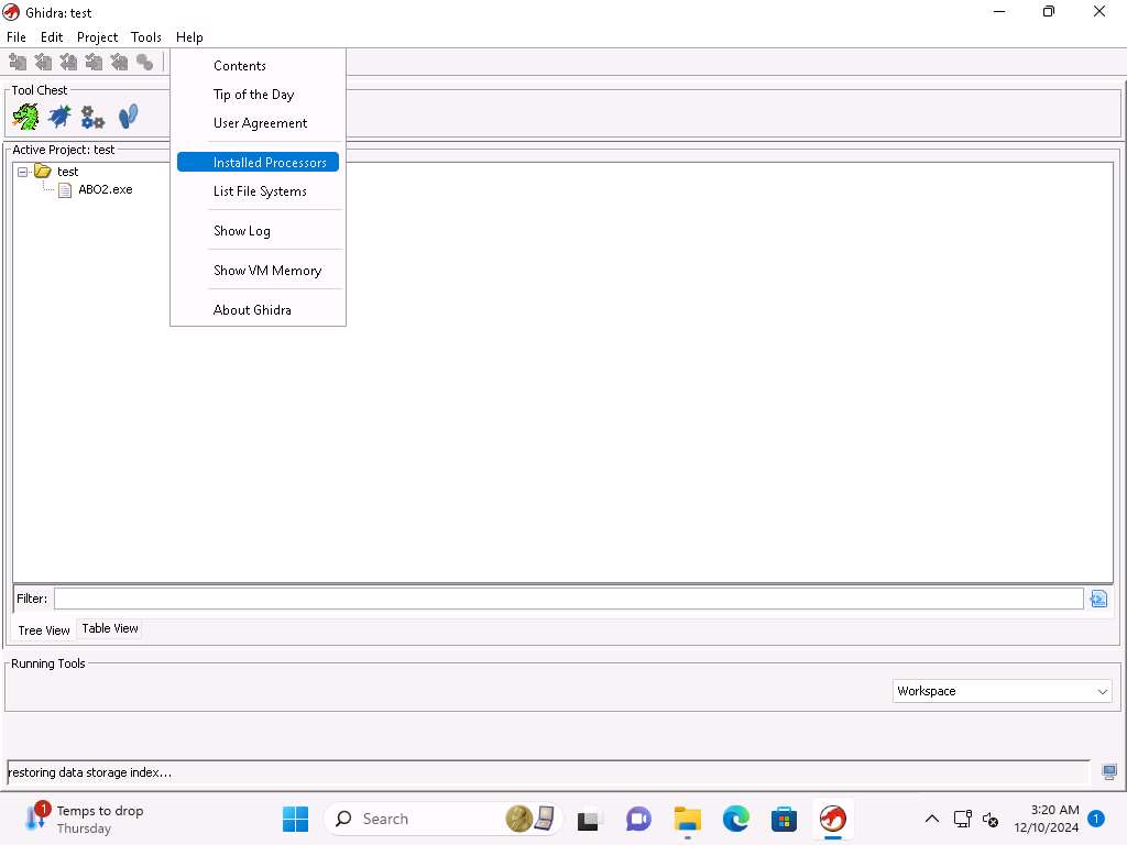 Now, we will look at the available Windows tools that we have in the Ghidra platform. There are quite a few plugins within Ghidra that we can leverage and use for our reverse engineering activities. We can create additional tools by combining and integrating the plugins. It is just a matter of practice.