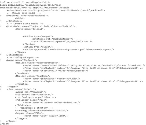 Defines the structure of the data that will be fuzzed in the Peach-specification language