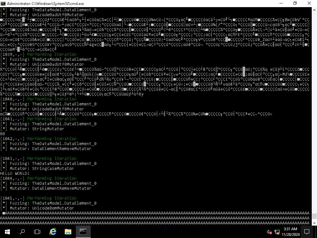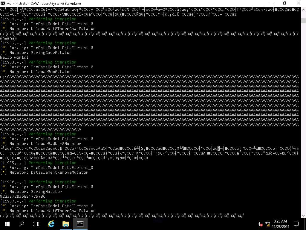 Screenshot Another way to see the progress and number of iterations performed by Peach is in the command-line output during fuzzing, which will show in the first entry of a list iteration number. Scroll upward direction in the terminal. An example of this is shown in the screenshot.