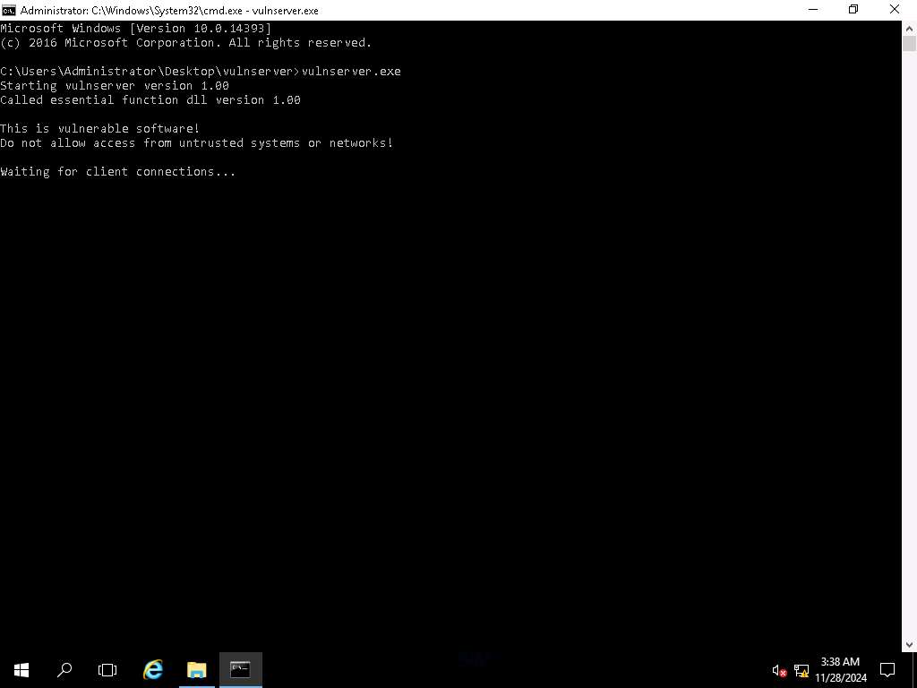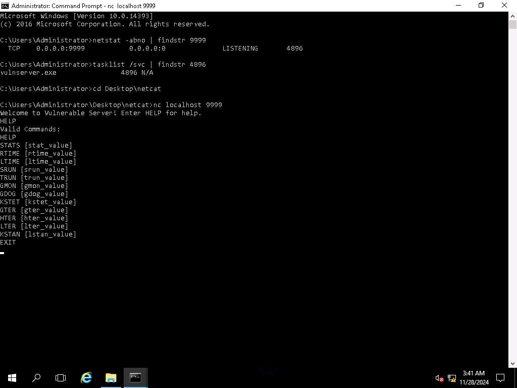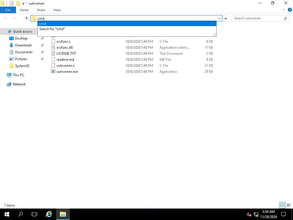 Screenshot In the terminal type vulnserver.exe and press Enter.