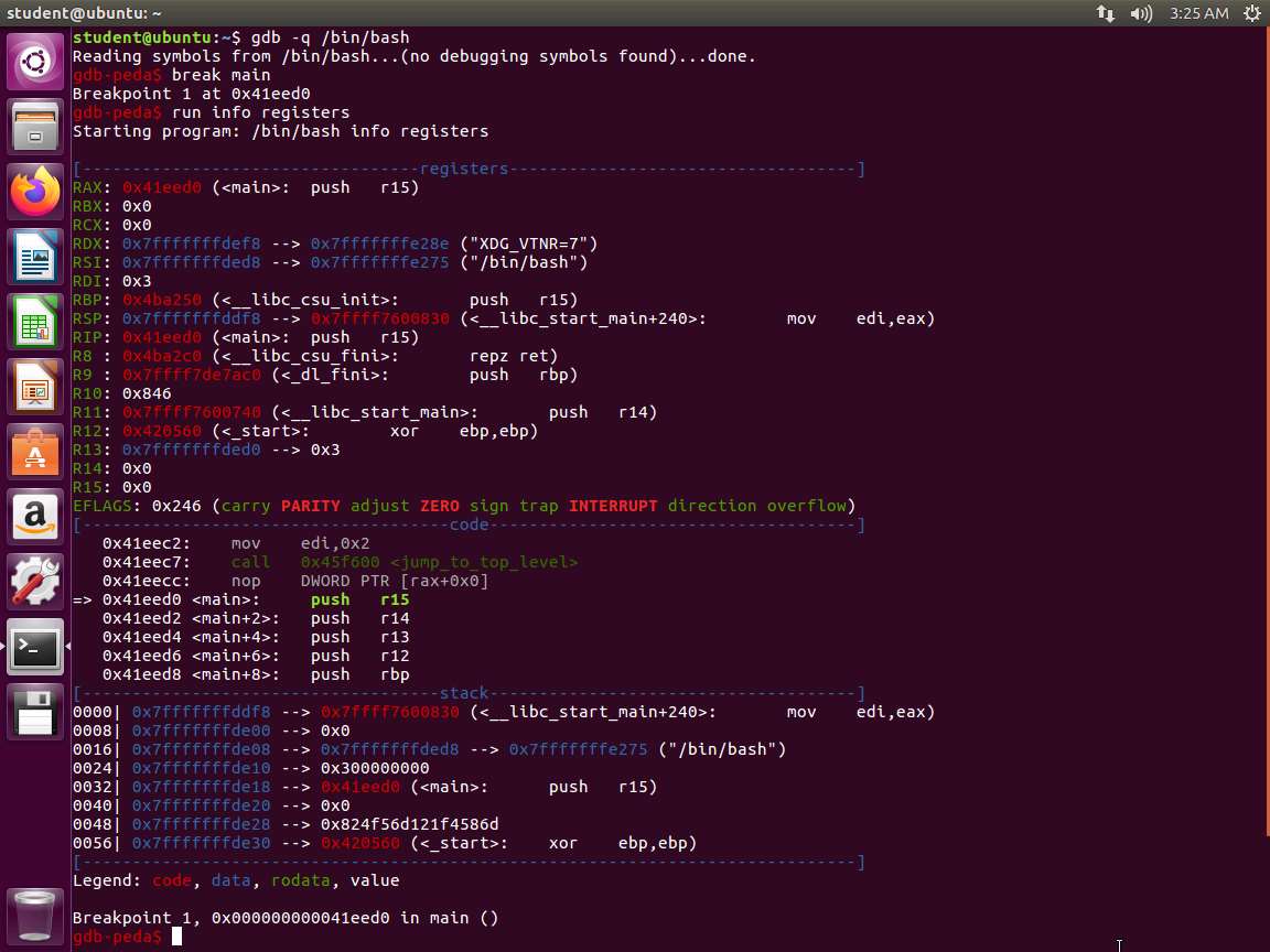 a. gdb -q /bin/bash