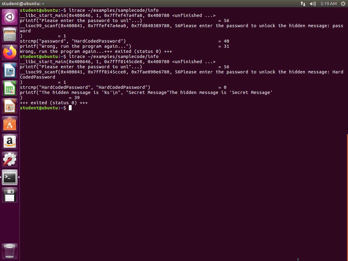 Screenshot c. ltrace ~/examples/samplecode/info2