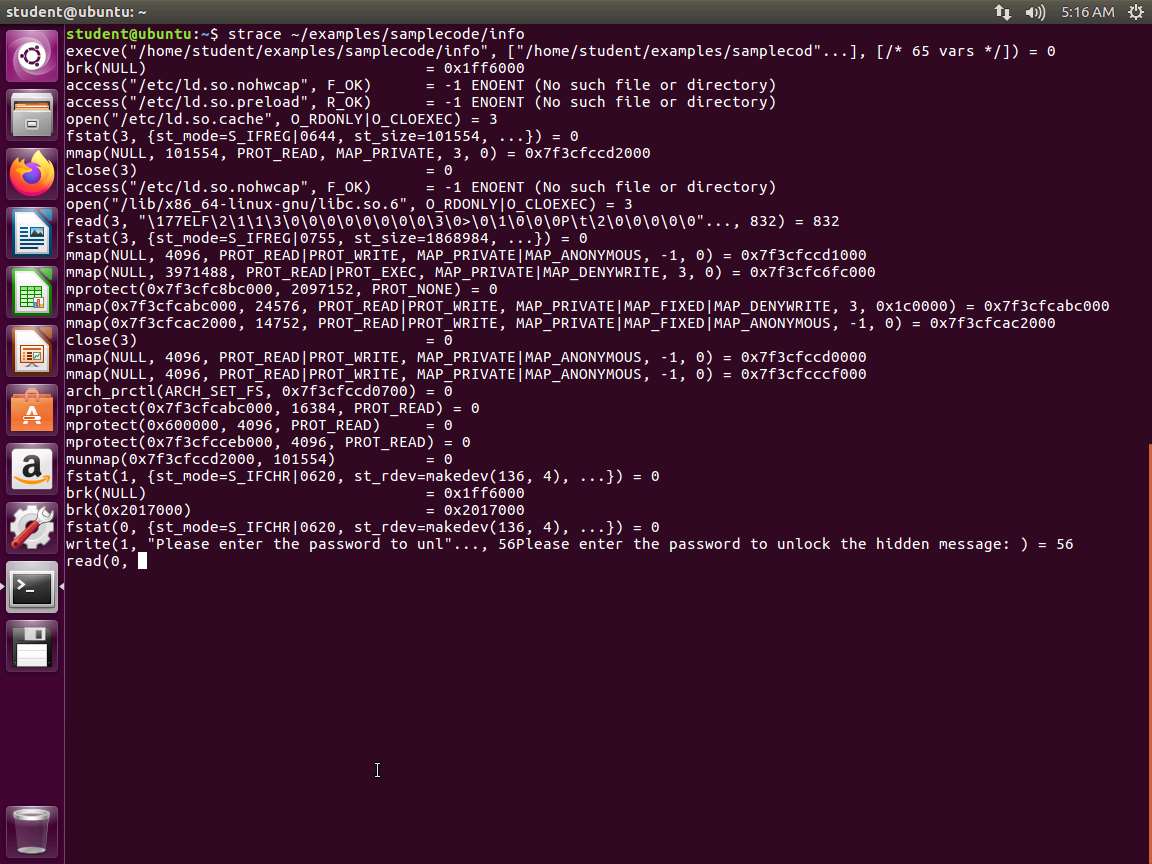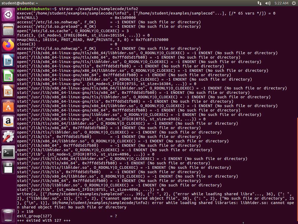 Screenshot d. strace ~/examples/samplecode/info2