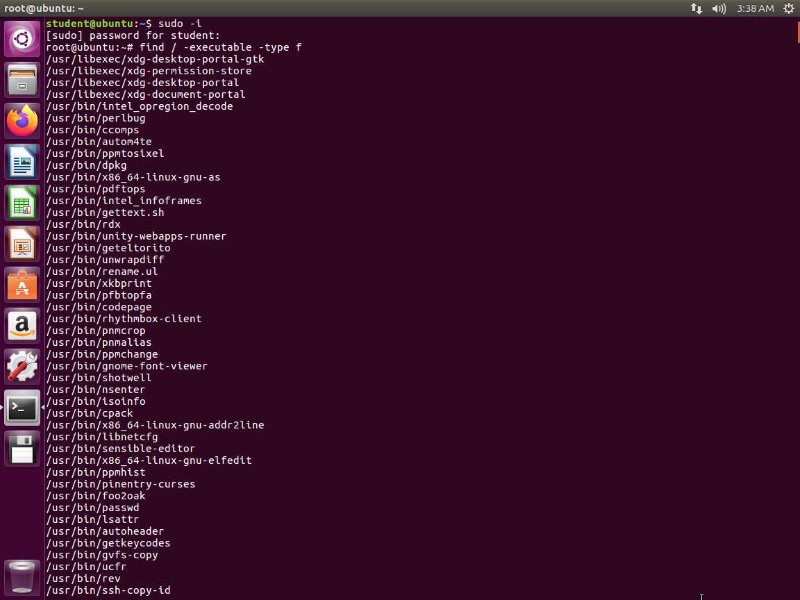 Screenshot The first step is discovery. In the terminal window, enter find / -executable -type f. The output of the command will display a long list of programs, but we wanted to cover the step, since we are doing binary analysis and need to find executable files.