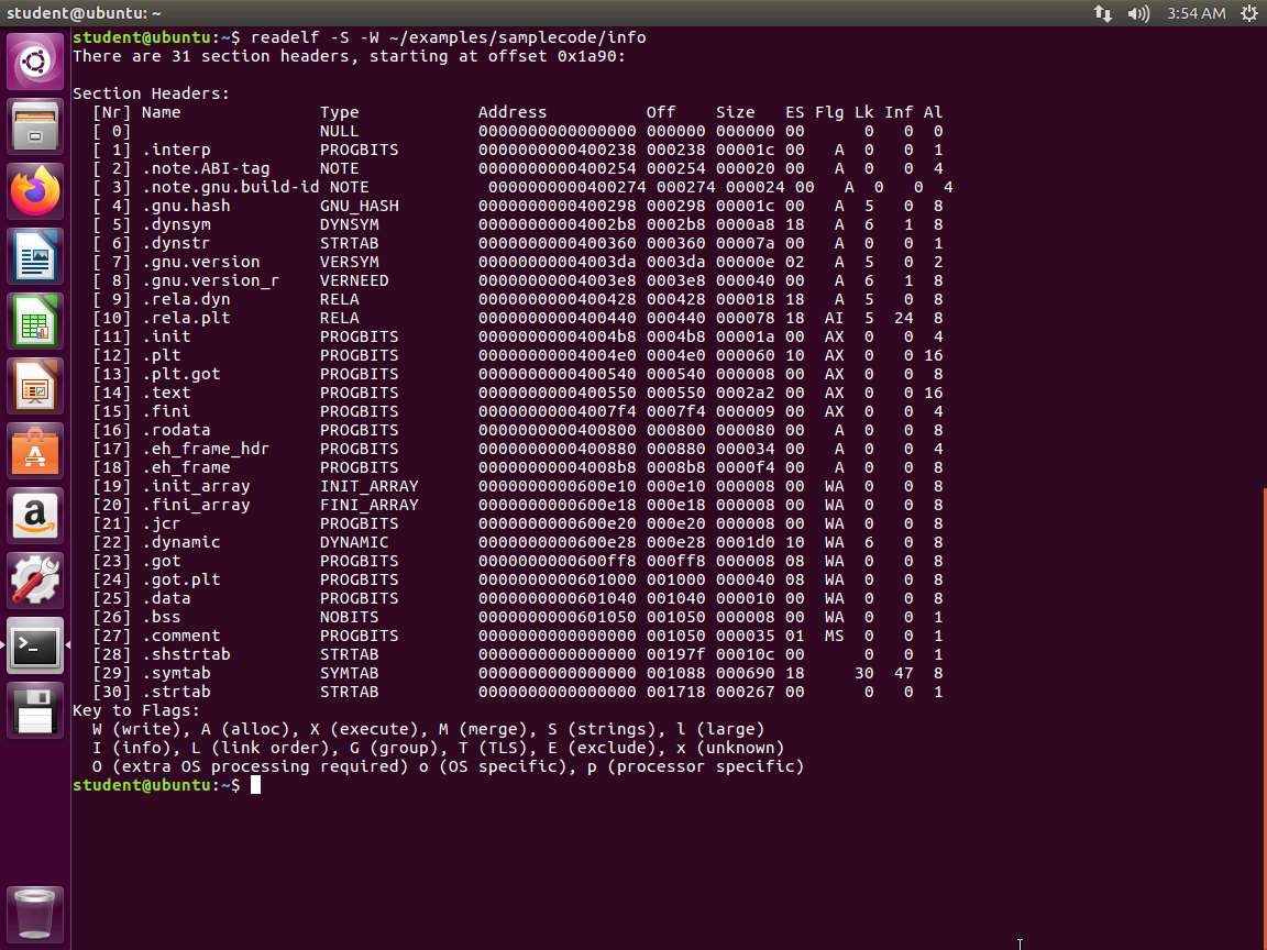 e. objdump -x ~/examples/samplecode/info