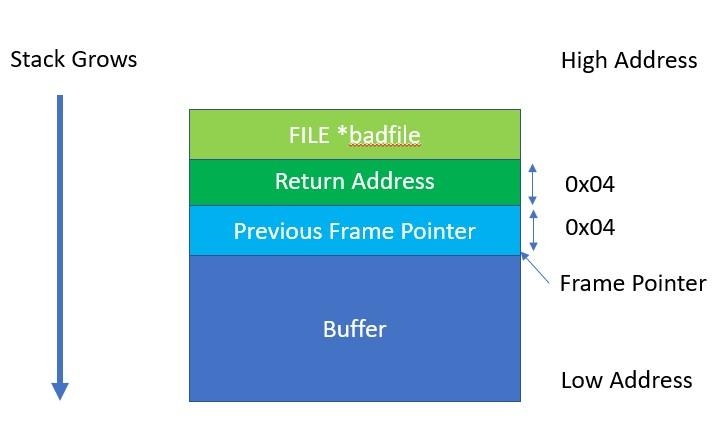 This is 0x04 bytes above the location where the FILE* was placed in the bof() methods stack frame. You can also observe that the system() will look for its return address 0x04 bytes about the ebp, which is exactly where the FILE* was placed in the bof() methods stack frame.