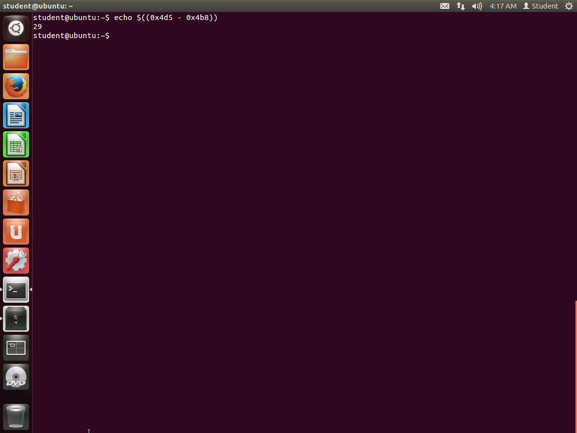 Screenshot Since we are on a 64-bit system, there are a couple of things to note. One is that the code segment is located at 0x400000; so in the binary, as shown in the image, the code starts at offset 0x4b8 because this is located at the top of the image. Then it finishes at 0x4d5. So, we want to calculate the difference as shown in the following screenshot.